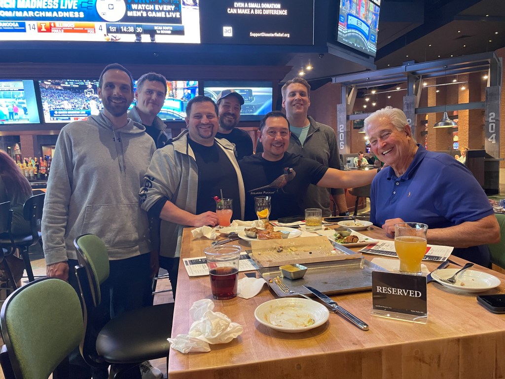 Despite not feeling very well, it was set up that we would go to the new Barstool Sportsbook at the Casino to watch the NCAA tournament games. Some friends joined my high schools friends and my wife and set it up that my father could join us too. This meant a lot as my Dad used to pull me from school to watch the games during the tourney. It only made sense that he would attend. It is a memory that will stay with me forever.